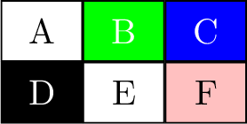 | pixels | A (0,0) | B (1,0) | C (2,0) | D (0,1) | E (1,1) | F (2,1) | ||||||||||||