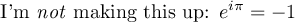 I'm \textit{not} making this up: \(e^{i\pi} = -1\)