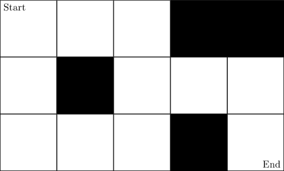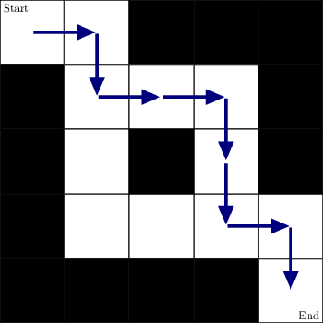 Each maze is a rectangular grid. Each space in the grid can connected to the orthogonally adjacent spaces. That is, from any location in the grid, you can move one space left, right, up, or down; you cannot move diagonally. The starting point of every maze is the upper left corner; the exit is in the bottom right.