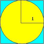 area of circle with radius 1 PI number of darts inside circle ---------------------------- = -- ~= ----------------------------- area of square with side 2 4 number of darts thrownEach dart's position is given by an (x, y) coordinate, so you need to randomly generate two values for each dart throw, which will be somewhere inside the square. You can use the Pythagorean Theorm to determine if the dart is within the circle: